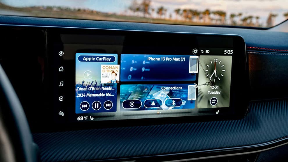 دو صفحه نمایش 12.3 اینچی که به داشبورد افزوده شدهاند، مختص مدل SR هستند. مدل SV صفحه نمایش 12.3 اینچی دارد اما خوشبختانه نمایشگر دیجیتال را ندارد، در حالی که مدل پایه S از صفحه نمایش 7.0 اینچی استفاده میکند. این صفحهها به خوبی عمل میکنند؛ گرافیک آنها کاملاً واضح است، پاسخدهی لمسی سریع است و دسترسی به همه چیز آسان است. همچنین، Apple CarPlay بیسیم و Android Auto به صورت استاندارد ارائه میشوند که یک مزیت بزرگ به حساب میآید.