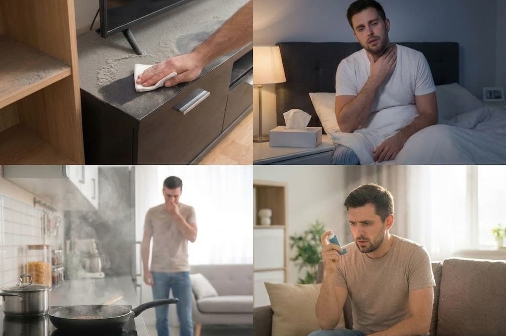 اگر تنها چند ساعت پس از نظافت، دوباره لایهای از خاک را روی میز تلویزیون یا مبلمان میبینید، این یک نشانه جدی است. این وضعیت نشان میدهد که تراکم ذرات معلق در فضای خانه شما بسیار بالاست.