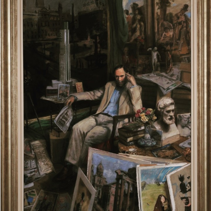 در این پرتره، ری مککنزی در حال نگاهکردن به اثر و نگهداشتن انگشت خود روی شقیقهاش است، گویی در حال بازی «رولت روسی» است.
