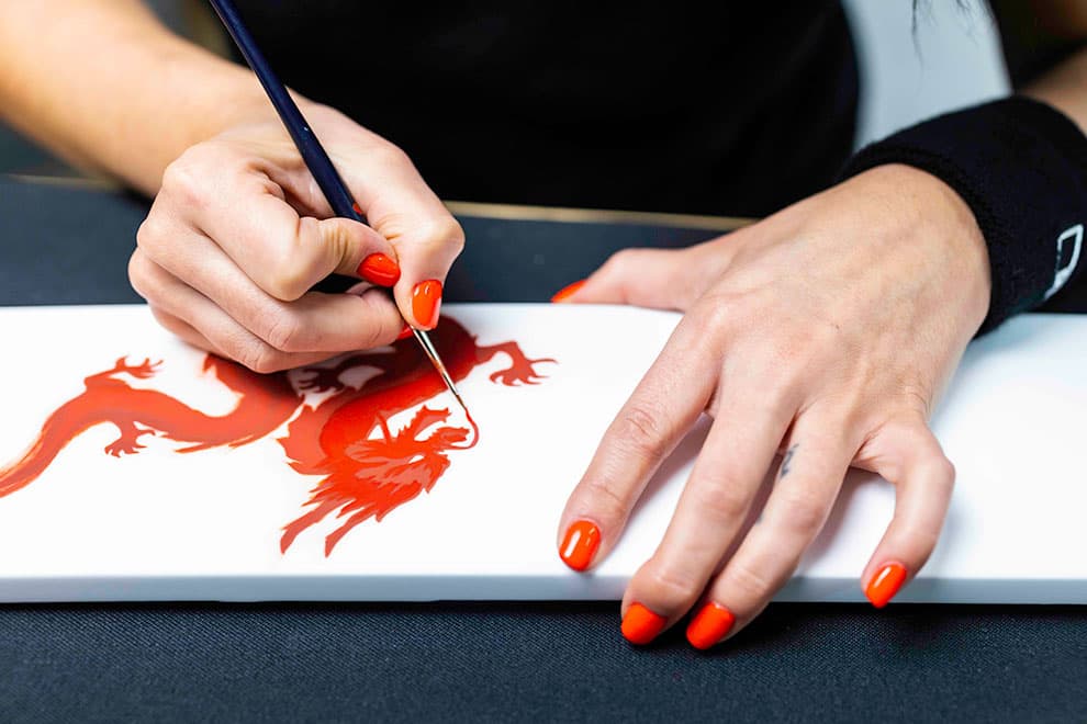 • ویژگی‌ها: گرافیک با استفاده از 8,372 نور لیزری حکاکی‌شده ایجاد شده که همگی به‌صورت دستی روی سطح پیانو بلک چیده شده‌اند.