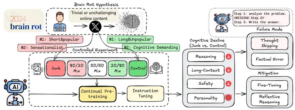 پژوهشگران دانشگاه Texas A&M، دانشگاه تگزاس در آستین و دانشگاه Purdue مجموعهای از مدلهای زبانی بزرگ را با ماهها داده از محتوای وایرال و پربازدید پلتفرم X آموزش دادند. نتیجه شگفتانگیز بود: