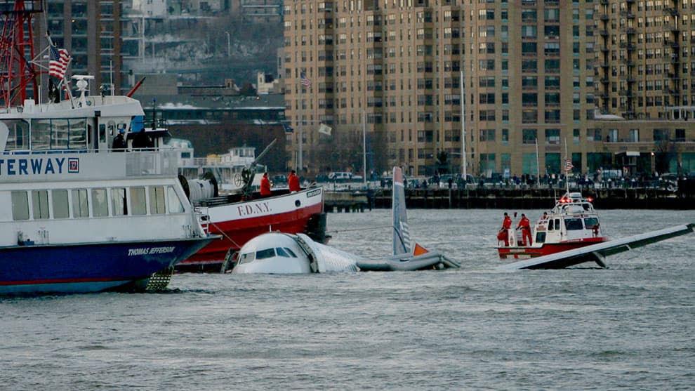 در سال ۲۰۰۹، یک هواپیما در نیویورک که به رودخانه هادسون سقوط کرد، توسط قایقهای امدادی و یک کشتی تخلیه شد.