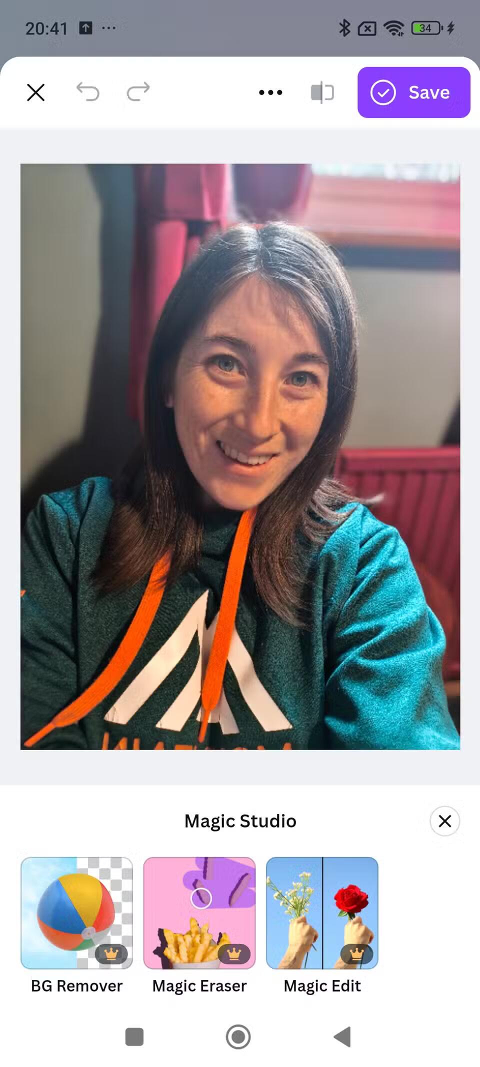کار این اپلیکیشن در چندین ثانیه انجام میشود و پس از اینکه تصویر خود را آپلود کردید و حذف پسزمینه انجام شد، ابزارهای ویرایش ساده در اختیار شما قرار داده میشوند. شما میتوانید از قالبهای ساده درون این برنامه یا پسزمینههای هوش مصنوعی یا دیگر ابزارها (البته فقط دارندگان نسخه Pro میتوانند از این ویژگیها بهره ببرند) استفاده کنید. نسخه رایگان اپلیکیشن Photoroom AI نیز به شما اجازه میدهد تا ۲۵۰ عکس را در آن ویرایش کنید، بدون آنکه واترمارک به عکسهای شما اضافه کند.