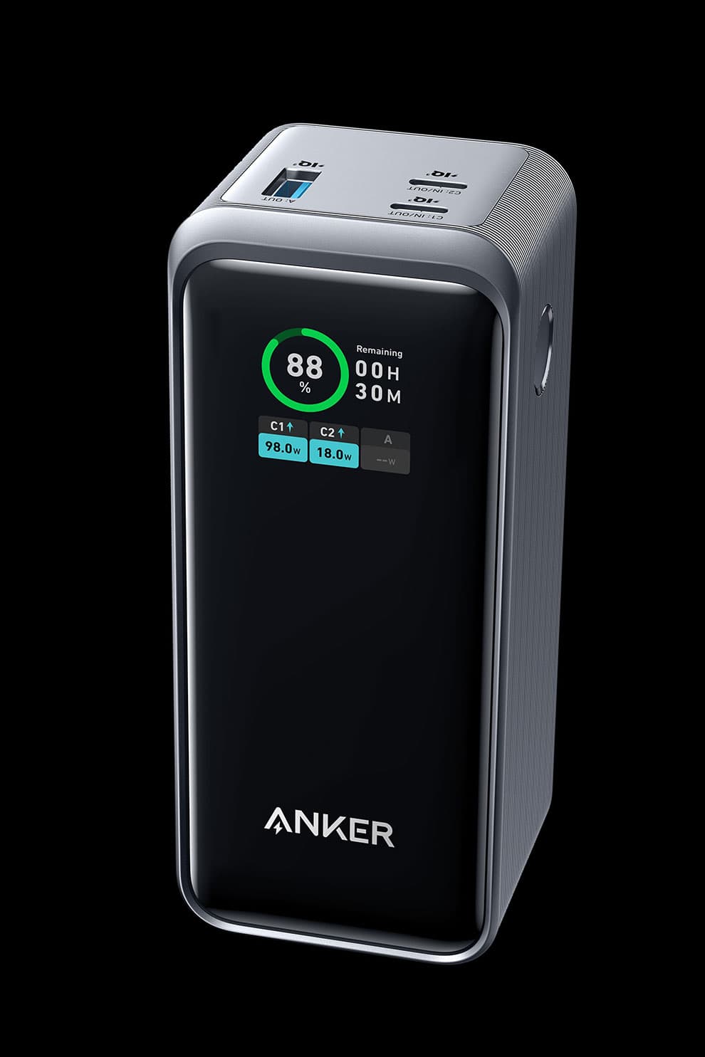 پاوربانک Anker Prime دارای صفحهنمایشی است که برای یک پاوربانک غیرمعمول است و سه پورت USB برای ورودی و خروجی، همراه با ظرفیت ۲۰۰۰۰ میلیآمپر ساعتی دارد. نمایشگر داخلی بسیار کاربردی است و سرعت شارژ و مقدار باقیمانده شارژ را نشان میدهد. ظرفیت بالا و سرعت بالای تحویل برق این پاوربانک را قادر میسازد حتی لپتاپهای حرفهای بزرگ را شارژ کند. این ویژگیها، Anker Prime را به یک ابزار ضروری برای مسافران مکرر یا کسانی که دور از پریز برق کار میکنند تبدیل کرده است.