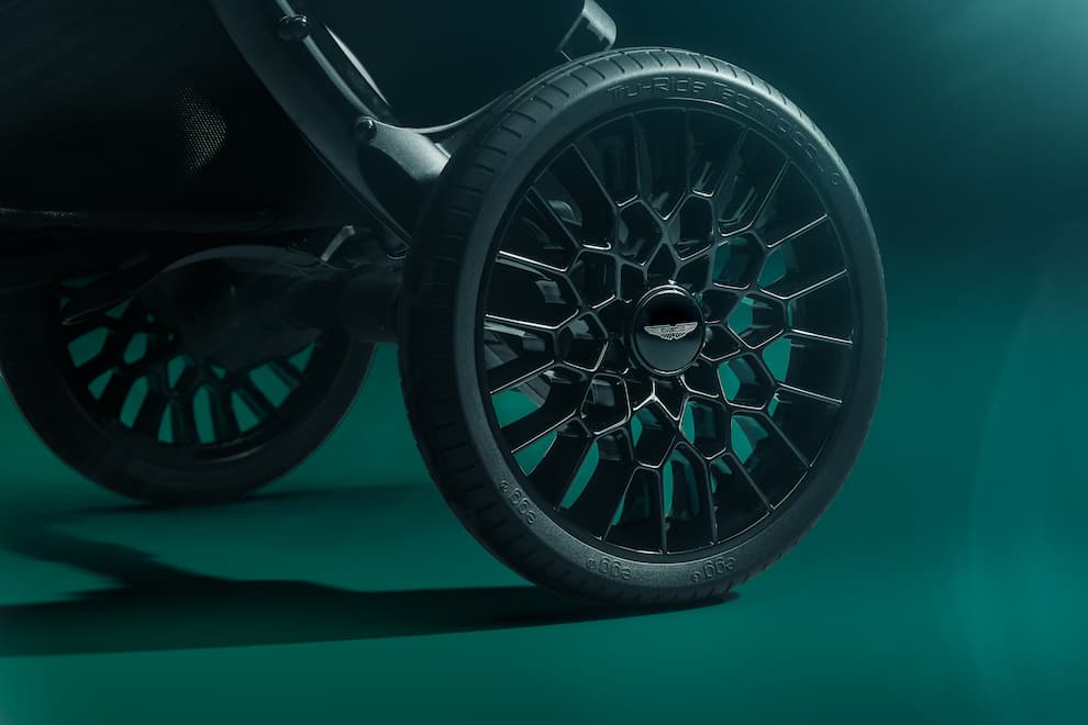- سه رنگ متمایز شامل سبز آیکونیک با خطوط لیمویی مسابقهای، و دو نسخه خاکستری با پارچه الهامگرفته از طراحی داخلی کلاسیک Aston Martin