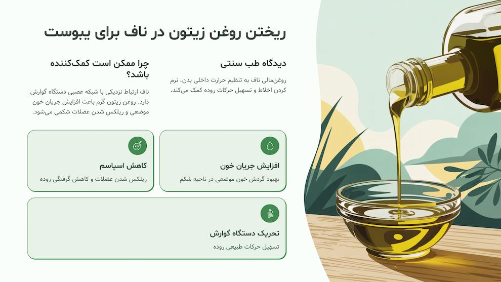 ارتباط ناف با جذب موضعی و دلیل تأثیرگذاری روغن زیتون