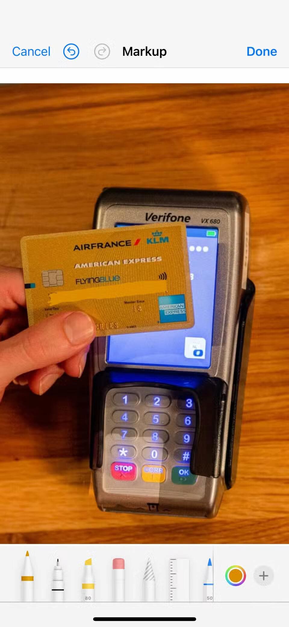 ویرایشگر عکس داخلی آیفون دارای ابزار تار کردن نیست. با این حال، شما همچنان میتوانید بخشهای حساس عکس را با استفاده از ابزار Markup پنهان کنید. این ابزار به شما امکان میدهد تا قسمتهایی از عکس را با ابزارهای مختلفی مانند قلم، شکل، ایموجی و استیکر بپوشانید. در ادامه نحوه استفاده از آن آمده است: