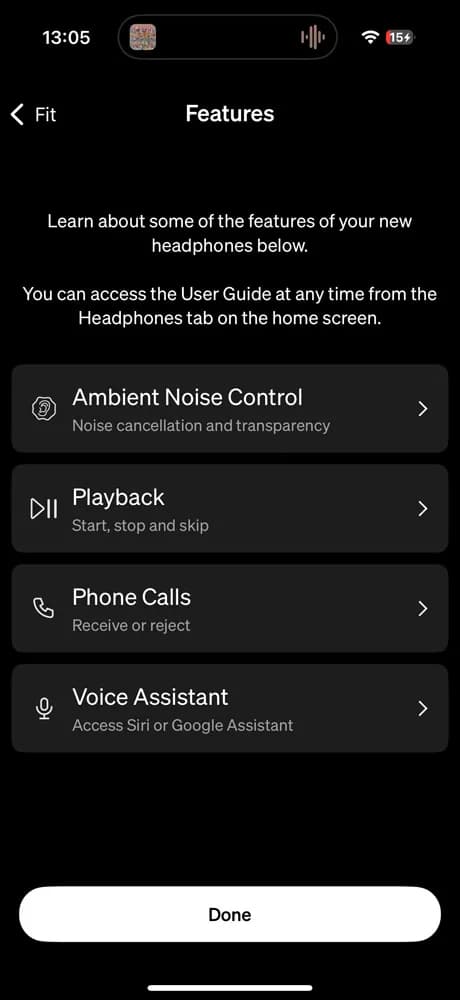 یکی از ویژگیهای موردعلاقه من که از مدلهای قبلی نیز حفظ شده، کنترلهای پیشفرض عالی و واضح است. با یک بار لمس میتوانید بین حذف نویز، حالت شفاف و حالت خاموش جابهجا شوید. صدای راهنمای واضحی هم وجود دارد، نه بوقهای مبهم. با دو بار لمس، دستیار صوتی فعال میشود.