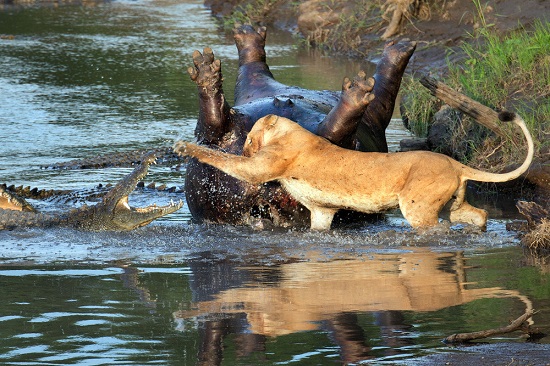 ریچارد چیو، توریست اهل سان فرانسیسکو بسیار خوش اقبال بود که توانست عکس های منحصر بفردی از جنگ یک ماده شیر تنها را با چند کروکودیل غول پیکر رودخانه مارا با دوربینش ثبت کند.