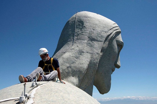 تصاویر جالب از تعمیر انگشت مجسمه عظیم مسیح در ریودوژانیرو که در اثر رعد و برق آسیب دیده است را میبینید.