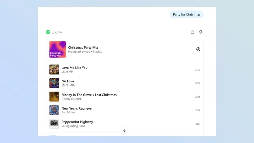 این یکی از محبوبترین و کاربردیترین ادغامها است. با اتصال Spotify به ChatGPT، میتوانید پلی لیستهایی کاملاً شخصیسازیشده بسازید؛ از درخواستهای ساده مثل پلی لیست کریسمس گرفته تا ایدههای بسیار خاص مانند موسیقی آلترناتیو راک از گروههای نیویورکی دهه نود. نتیجهها دقیق و هماهنگ با درخواست هستند و تجربهای روان ارائه میدهند.