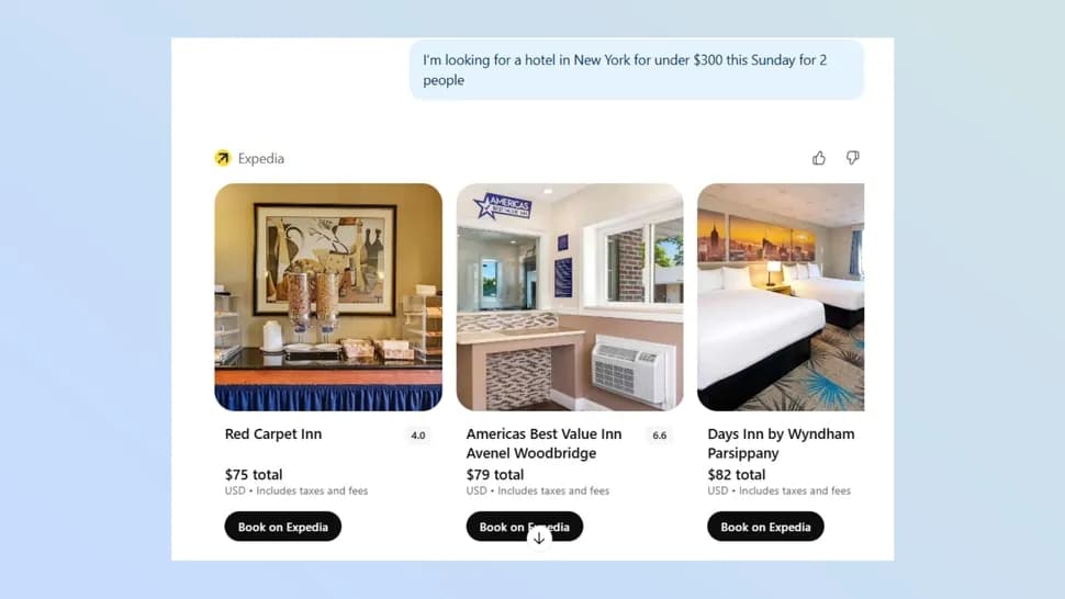 Expedia یکی از کاربردیترین گزینهها برای جستوجوی پرواز و هتل است. میتوانید درخواستهایی بسیار جزئی مطرح کنید، مثلاً هتلی با بودجه مشخص، در تاریخ خاص و با حالوهوای لوکس. ChatGPT گزینهها را پیشنهاد میدهد و امکان اصلاح و محدودتر کردن جستوجو را هم فراهم میکند.