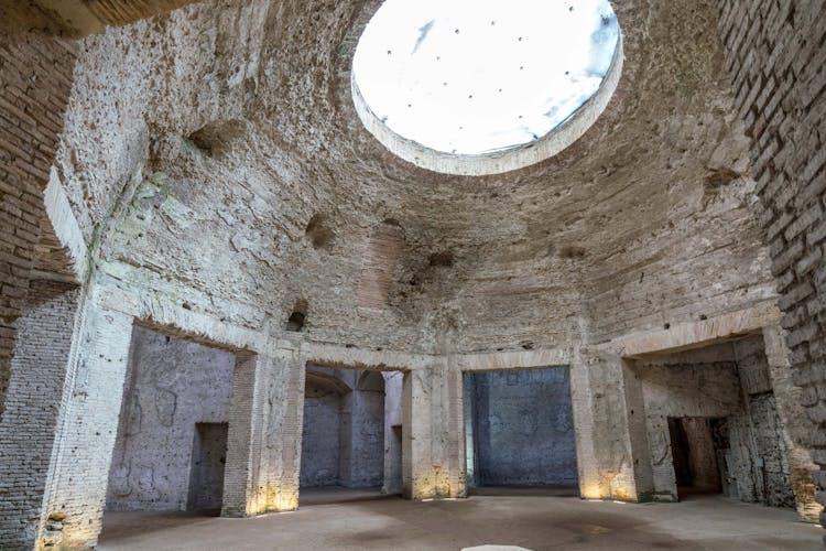 اتاق هشتضلعی (Octagonal Room): اینجا از برجستهترین بخشهای Domus Aurea به شمار میرود که به دستور نرون ساخته شد. این اتاق دارای سقفی موزاییکی و پرنقشونگار بود که صحنههایی از اسطورهها را به تصویر میکشید. این سقف نفسگیر تا امروز نیز باقیمانده و طراحیهای ظریف و رنگهای دقیق آن، زیباییاش را حفظ کردهاند.