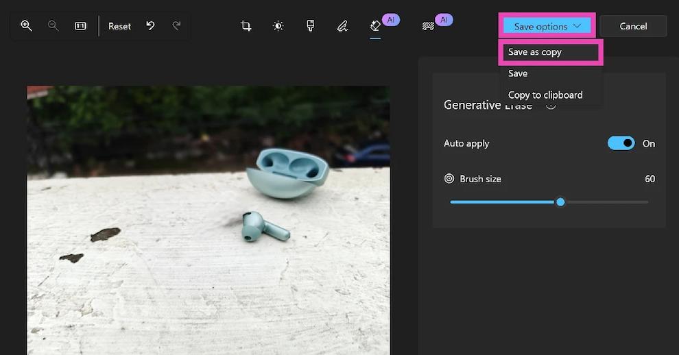 مرحله ۷: در پایان، از گزینهی Save as a copy برای ذخیرهی نسخهی جدید تصویر استفاده کنید تا فایل اصلی حفظ شود.