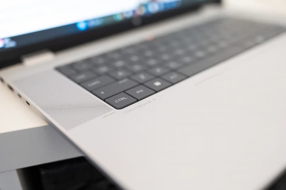 کیبورد OmniBook X Flip 16 بین دو اسپیکر بزرگ قرار گرفته و به همین دلیل فاقد نامپد است. با این حال، کلیدها تخت و بزرگ هستند و تجربه تایپ راحتی ارائه میدهند. عمق کلیدها مناسب است، اما فاصله کم میان آنها ممکن است باعث خطا در تایپ شود، بهویژه اگر دستهای بزرگی داشته باشید.
