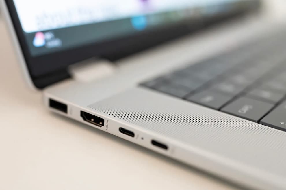 بدنه آلومینیومی OmniBook X Flip 16 استحکام بالایی دارد و میتوان بدون نگرانی از خم شدن، آن را از یک گوشه بلند کرد. این لپتاپ از نظر پورتها نیز کامل است: