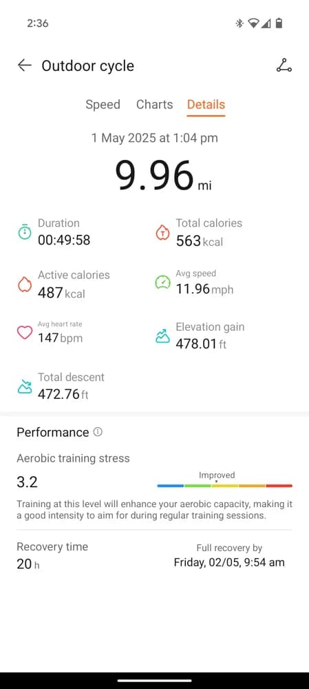 از میان حدود ۱۰۰ حالت فعالیت مختلف، فقط تعداد کمی را امتحان کردم؛ از جمله ورزشهایی مثل فریزبی و رقص شکم! ساعت توانایی تشخیص خودکار فعالیتهایی مثل دویدن، پیادهروی، پارو زدن و دستگاه الیپتیکال را دارد، اما نسبت به برخی رقیبان کمتر پیشرفته است و تشخیص پیادهروی همیشه درست عمل نمیکرد. با این حال، فعالیتهایی مثل کوهنوردی، شنا در استخر، دوچرخهسواری در جاده و تمرین با دوچرخه ثابت بهخوبی ثبت شدند و اپلیکیشن Huawei Health هم آنها را بهدرستی به حساب Strava من منتقل کرد.