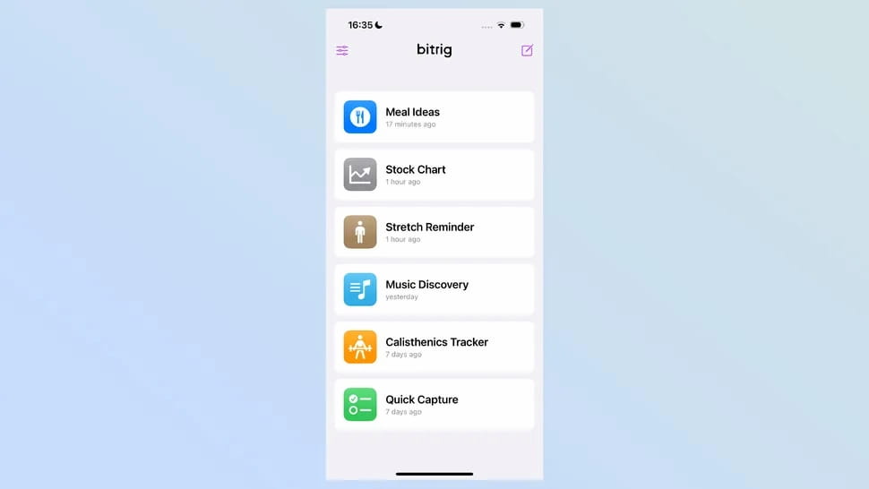 برخلاف Claude یا Grok که خروجی را صرفاً به شکل کد در محیط چت نمایش میدهند، Bitrig اپ را مستقیماً برای گوشی شما میسازد. پس از ساخت هر اپ، میتوانید دوباره به آن برگردید و دادههایی که وارد کردهاید ذخیره خواهند شد.