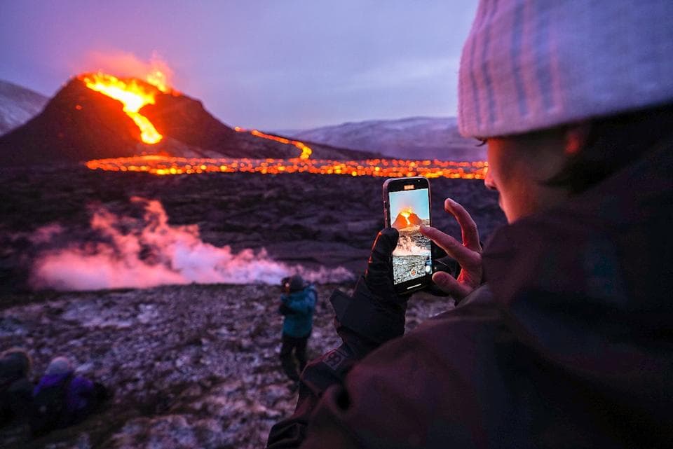 در اواخر مارس ۲۰۲۱، هزاران نفر در ایسلند به دره گلدینگادالور رفتند تا فوران آتشفشان فاگرادالسفیال را ببینند؛ نخستین فوران این آتشفشان طی نزدیک به ۸۰۰ سال گذشته بوده است. برخی از بازدیدکنندگان عکس میگرفتند، عدهای در سکوت به تماشای این منظره شگفتانگیز نشسته بودند و حتی برخی مشغول کباب کردن مارشملو بر فراز جریانهای گدازه بودند، در حالی که ابرهای سفید خاکستر در آسمان بهآرامی بالا میرفتند و سنگهای سیاه را پشت سر میگذاشتند.