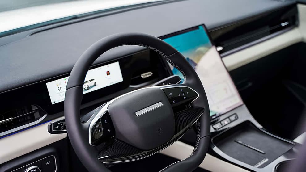 داشبورد طراحی بسیار شیکی دارد و صفحه نمایش مرکزی عمودی به تونل متصل میشود و دارای شارژر القایی با تهویه است تا گوشی هوشمند را از گرما محفوظ نگه دارد. در کنار آن یک شیار دیگر بدون قابلیت شارژ وجود دارد و زیر تونل هم فضایی برای اشیاء حجیم به همراه سه سوکت شارژ: USB-A، USB-C و ۱۲ ولت است.