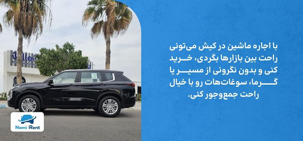 در هر دو حالت، داشتن وسیلهی نقلیه شخصی یا اجاره ماشین در کیش به شما اجازه میدهد تا بهراحتی میان این مراکز رفتوآمد کنید و زمان خود را به بهترین شکل مدیریت کنید. نامیرِنت با ناوگانی متنوع از خودروهای اقتصادی تا لوکس، امکان جابهجایی راحت میان مراکز خرید را برای گردشگران فراهم میکند.