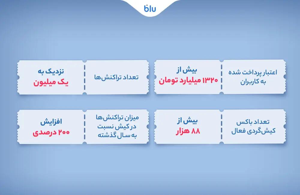 در طول جشنواره تابستانی بلو در کیش که از ابتدای شهریور آغاز شده و تا ۲۰ آبان ۱۴۰۴ ادامه دارد، بیش از ۱۳۲۰ میلیارد تومان اعتبار به گردشگران و ساکنان جزیره در قالب «باکس کیش‌گردی» پرداخت شده است. طبق داده‌های سازمان منطقه آزاد کیش در این کمپین تراکنش‌های فروشگاه‌های جزیره نسب به سال گذشته افزایش ۲۰۰ درصدی داشته است: نشانه‌ای از اثر مستقیم بانکداری نو در پویایی اقتصادی مناطق گردشگری.