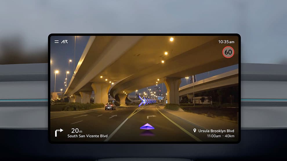 یکی از ویژگیهای کلیدی فناوری ثبت اختراع الجی، توانایی آن در نمایش تصاویر پویا AR است. این قابلیت هدایت مسیر را با تنظیم نمادهای نشان دهنده وسیله نقلیه و جهت بر اساس شرایط رانندگی به صورت بلادرنگ، شهودیتر میکند. گرافیکهای AR میتوانند به طور یکپارچه جداسازی، تبدیل و ادغام شوند و همین نیز به سیستم اجازه میدهد تا اطلاعات پیچیده رانندگی مانند سرعت، شیب، تغییر خط و محاسبه مجدد مسیر را به صورت بصری منتقل کند، به روشی که به راحتی برای راننده قابل درک باشد.