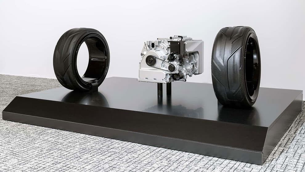 «این واحد مفهومی برای تولید برق به دو موتور دوار با نصب طولی مجهز شده است که امکان تأمین برق بیشتر و دستیابی به نسبت مرکز ثقل پایین را فراهم میکند. این واحد همچنین با افزایش حجم موتور به دنبال بهبود لرزش و آلایندگی است. همچنین برای استفاده در خودروهای اسپرت در نظر گرفته شده است.»