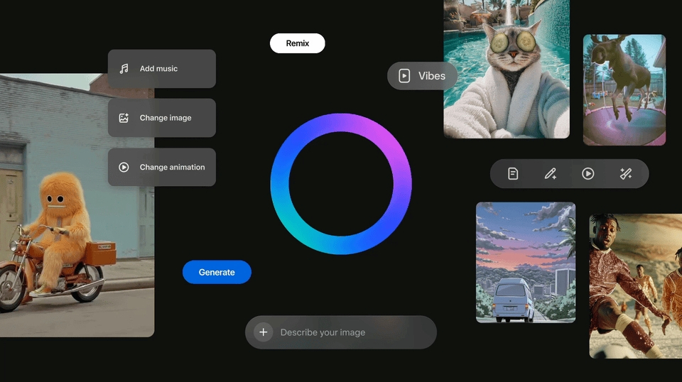 Vibes نسخهای تازه از اپلیکیشنهایی مانند TikTok یا Vine است که به کاربران اجازه میدهد ویدیو بسازند، آن را به اشتراک بگذارند و محتوای دیگران را نیز تماشا کنند. تفاوت بزرگ Vibes در این است که تمام ویدیوهای موجود در آن به طور کامل توسط هوش مصنوعی تولید میشوند.