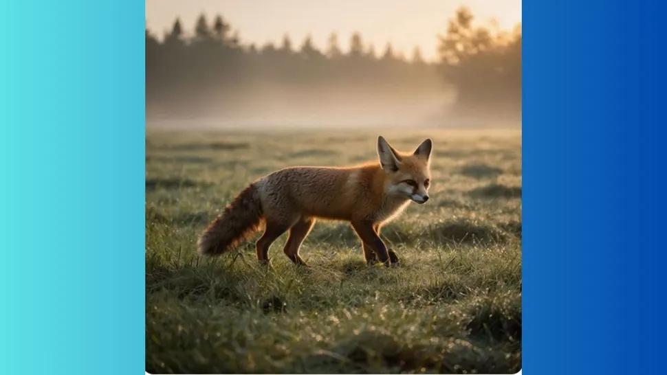 «صحنهای آرام از حیات وحش تصویر کن: یک روباه قرمز در حال عبور از جنگلی مهآلود در سپیدهدم، با نور طلایی ساعت جادویی، بافت موی بسیار دقیق و عمق میدان کم.»