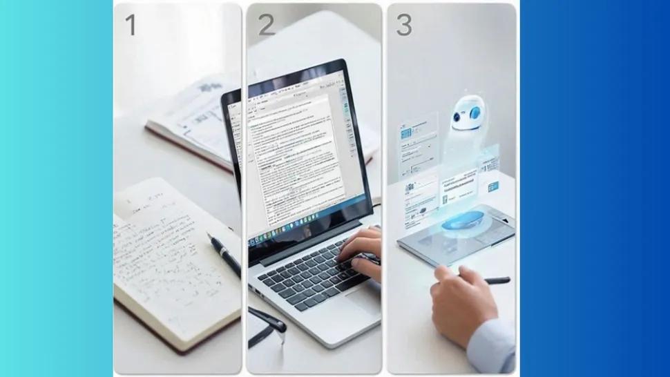 «یک استوری بورد سهقسمتی بساز که تحول فرایند ویرایش را از دفترچههای کاغذی به لپتاپ و سپس دستیار هوش مصنوعی هولوگرافیک نشان دهد؛ در سبک شرکتی تمیز و مدرن.»