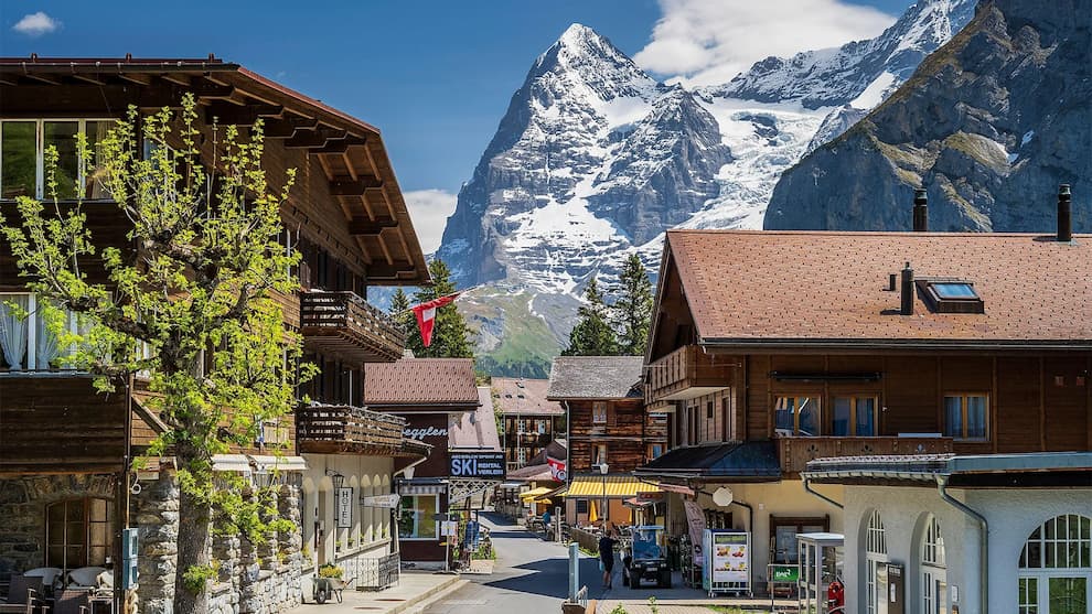 - Mürren’s car-free streets are lined with cosy inns, restaurants and ski rental outfitters (Credit: Alamy)