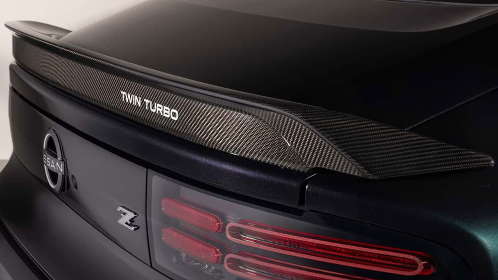 - اسپویلر عقب از جنس فیبر کربن با لوگوی «Twin Turbo» به سبک قدیمی طراحی شده است.