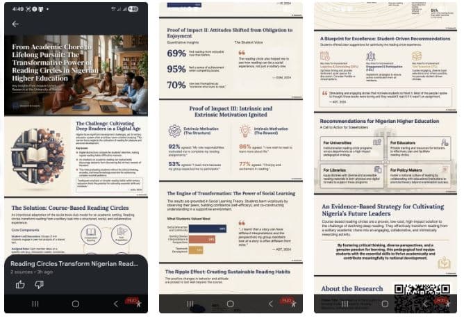 پس از تولید، میتوانید فایل را بهصورت PDF دانلود کنید، ارائه را مستقیماً داخل NotebookLM اجرا کنید یا حتی تصاویر جداگانه هر اسلاید را ذخیره کنید. اشتراکگذاری هم ساده است؛ فقط با افزودن آدرسهای جیمیل، دیگران میتوانند به کل دفترچه، منابع و خروجیها دسترسی داشته باشند.