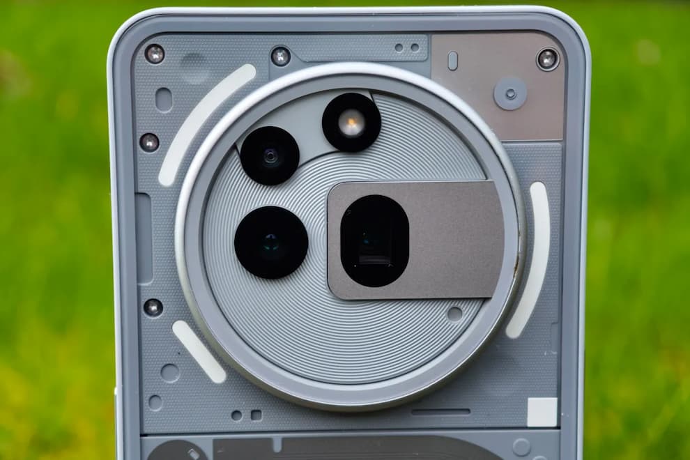 در کنار مدل استاندارد Phone 3a، طراحی خاص مدل 3a Pro کاملاً به چشم میآید. Nothing به جای استفاده از شیشهی تیره برای پنهان کردن لنزها (رویکرد رایج در پرچمداران)، تصمیم گرفته تا تفاوت در شکل و اندازهی دوربینها را به یک بیانیهی طراحی تبدیل کند. جزیرهی دوربین از جنس آلومینیوم است و بهطور محسوسی از بدنه بیرون زده است.