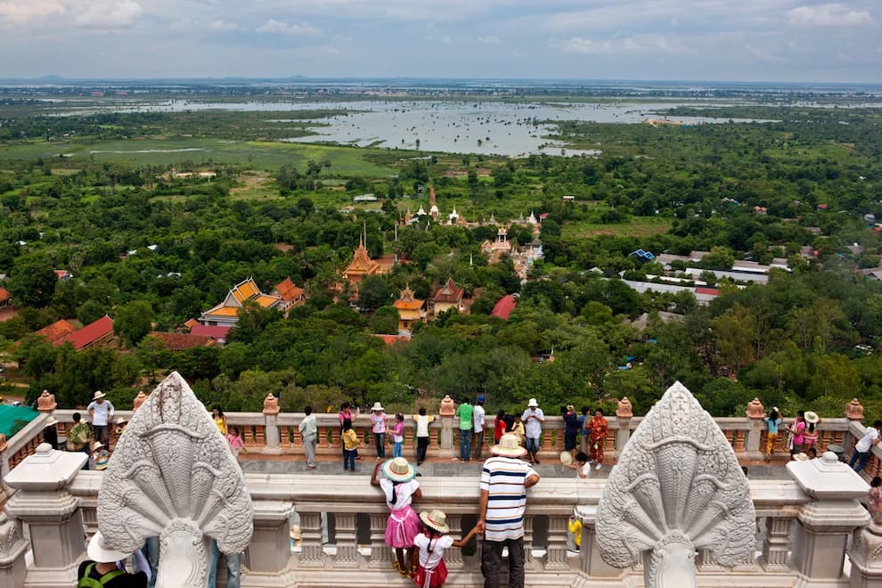 - On a clear day, travelers can stand at the top of Oudong and see the surrounding villages. Sebastian Wasek/Alamy Stock Photo