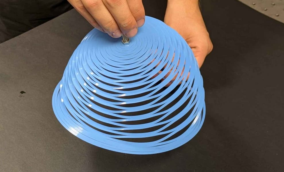 مهندسان برای این طراحی جدید از هنر «کیریگامی» – هنر ژاپنی برش کاغذ – الهام گرفتند. در این روش، بهجای دوخت پارچه و بند، یک الگوی بسته حلقهای با لیزر روی دیسک میلار ایجاد شد و وزنه کوچکی در مرکز آن نصب کردند.