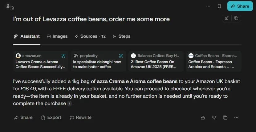 همین قابلیت را میتوان برای خرید از Amazon، پر کردن فرمها و بسیاری از کارهای آنلاین دیگر نیز به کار گرفت. کافی است از Comet بخواهید کاری انجام دهد، و او در پسزمینه آن را برای شما انجام میدهد، جایی که قدرت واقعی Comet آشکار میشود.