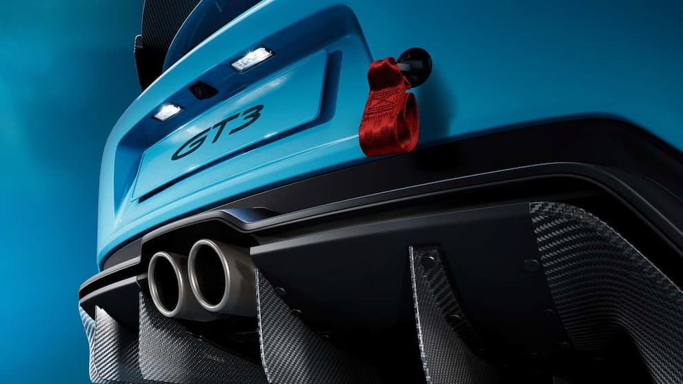 نسخه فیسلیفتشده 911 GT3 اکنون با یک کیت آیرودینامیکی جدید ارائه میشود که شامل دیسکهای فیبرکربن روی چرخهای عقب است. این قطعات جذاب مقاومت هوا را کاهش میدهند، هرچند طراحی زیرین چرخها همچنان متقارن است. چرخهای جدید 20 اینچی جلو و 21 اینچی عقب در مجموع حدود ۶ کیلوگرم از وزن خودرو کم میکنند.