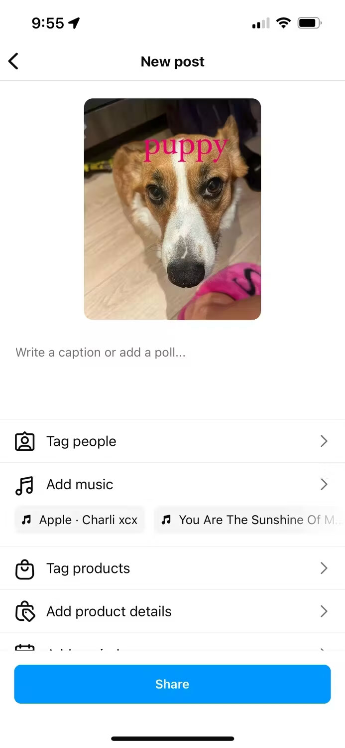 ۷. جزئیات دیگر مربوط به پست را اضافه کنید و سپس روی Share بزنید.