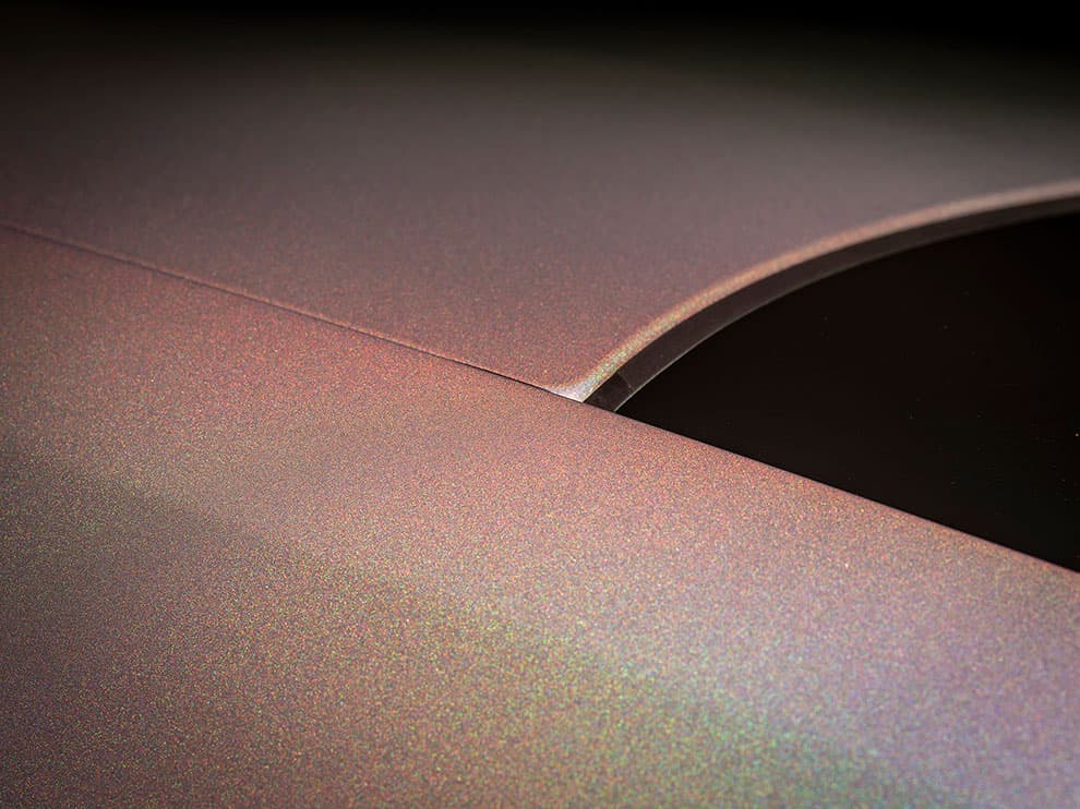 ثبت این پدیده در یک پوشش رنگ سفارشی نیازمند بیش از یک سال آزمایش بود. شیمی رنگ، زمانهای کاربرد و لایه پایه بهطور گسترده آزمایش شد تا به مفهوم مشتری برسد. پوشش نهایی با اعمال هفت لایه لاک، شامل یک لایه خاص پیرلست، که با تکههای ریز فلوراید منیزیم و آلومینیوم ترکیب شده است، بهدست میآید. این امر یک اثر فلزی عمیق در نور کم ایجاد میکند که در نور خورشید به رنگین کمان تغییر رنگ میدهد.