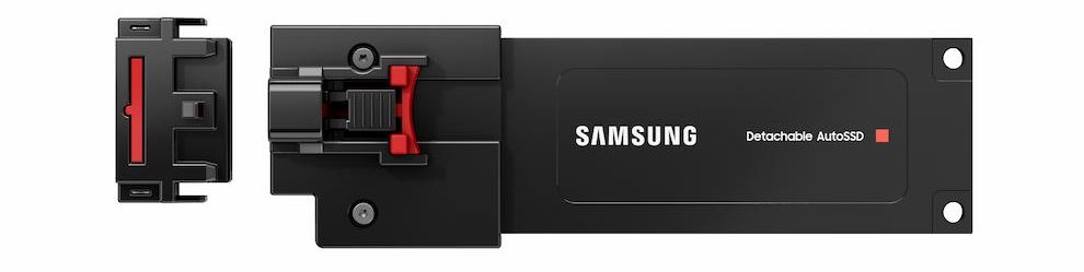 Detachable AutoSSD سامسونگ سریعترین فناوری ذخیرهسازی خودرو در صنعت است که برای تولید انبوه طراحی شده و مخصوص محیطهای سخت و پرچالش داخل خودرو ساخته شده است. برخلاف حافظههای تعبیهشده سنتی، این مدل از شکل ظاهری ماژولار E1.A بهره میبرد که در آن کنترلر و حافظه NAND از هم جدا هستند؛ این طراحی به بهبود دفع حرارت، افزایش طول عمر محصول و سهولت در ارتقا یا تعویض قطعات کمک میکند. این درایو با در نظر گرفتن شرایط واقعی رانندگی ساخته شده و شامل کانکتور و آداپتور خودرویی مقاوم در برابر ضربه، لرزش مداوم و تغییرات شدید دما است.