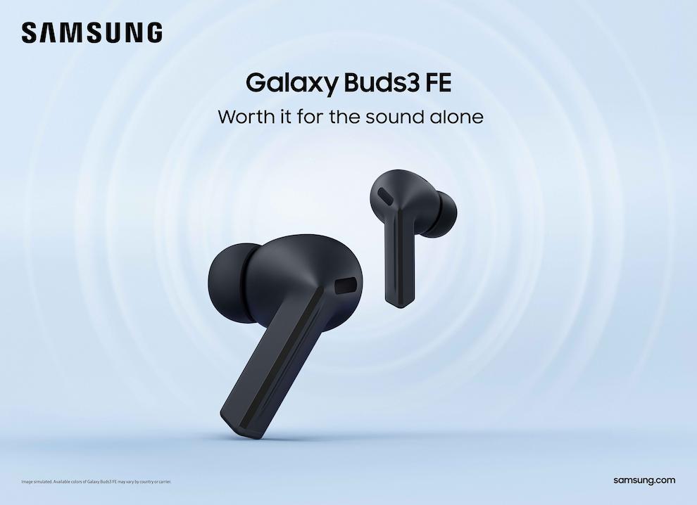 مدل Galaxy Buds3 FE نیز سری سیلیکونی دارد و داخل گوش محکم قرار میگیرد، اما طراحی آن به نسبت Pro سادهتر و مینیمال است.