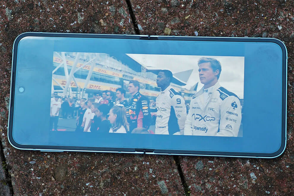 چین خوردگی صفحهنمایش وقتی از جلو نگاه میکنید تقریباً نامرئی است، اما از طرفین بیشتر از برخی گوشیهای تاشوی رقبا قابل مشاهده است. مانند اکثر رقبا، محافظ صفحهنمایش پلاستیکی از پیشچسباندهشده بسیار منعکسکننده است، که ممکن است به این معنی باشد که باید روشنایی را بیشتر از یک گوشی با انعکاس کمتر تنظیم کنید تا به وضوح ببینید.