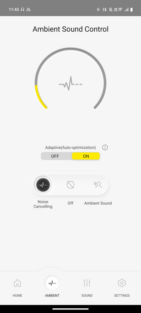 حالت جدید حذف نویز تطبیقی (Adaptive ANC) به طور پیشفرض فعال است و زمانی که از یک محیط آرام به یک مکان پر سروصدا وارد میشوید، اثر حذف نویز را به سرعت افزایش میدهد. این حالت به هیچ وجه آزاردهنده نیست و تنها یک صدای هیس خفیف تولید میکند که تنها در سکوت مطلق قابل شنیدن است و هنگام گوش دادن به پادکستهای گفتاری کاملاً ناپدید میشود. حالت محیطی (Ambient Mode) نیز در دسترس است تا در صورت نیاز، حس بهتری از اطراف داشته باشید. همچنین میتوانید شدت حذف نویز را به صورت دستی تنظیم کنید، اما من ترجیح دادم که مدل AZ100 به صورت خودکار این کار را انجام دهد.