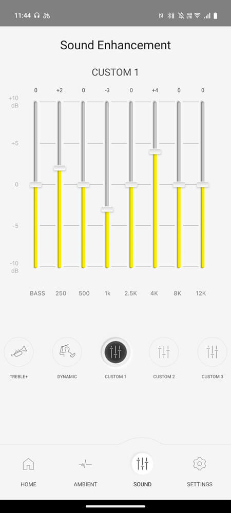 با این حال، همچنان تست تناسب سریها یا تنظیم اکولایزر بر اساس شنیدن وجود ندارد، اما تکنیکس فرآیند تنظیم صدا را بسیار آسانتر کرده است. اکنون یک اکولایزر هشتباندی سفارشی به جای اکولایزر پنجباندی در مدل AZ80 وجود دارد و سه حالت سفارشی جداگانه برای ذخیره تنظیمات شما در دسترس است. این ویژگی برای گوش دادن به ژانرهای مختلف موسیقی یا کاهش شدت باس در پادکستها بسیار مناسب است. علاوه بر این، شش تنظیم از پیش تعیینشده نیز وجود دارد.