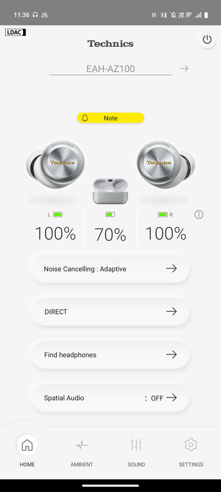 با باز کردن اپلیکیشن همراه گوشی هوشمند، به سرعت متوجه شدم که تکنیکس به بازخورد مشتریان توجه کرده است. اکنون حذف نویز (ANC) به طور پیشفرض در حالت تطبیقی قرار دارد و دیگر نیازی به تنظیم دستی قدرت حذف نویز نیست. همچنین، استفاده از بلوتوث LDAC با کیفیت بالا این بار شما را از بسیاری از ویژگیها محروم نمیکند.