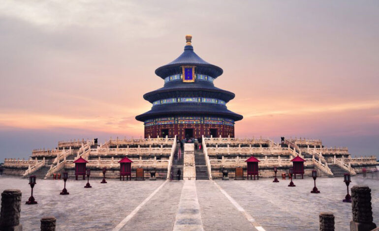 مشهورترین معبد در کشور چین، معبد بهشت است و در اصل، یک معبد محسوب نمیشود. این مکان در حقیقت یک محراب و قربانگاه است. در این مکان، هیچ راهب و زائری وجود ندارد. با این حال، معماری خارقالعاده این معبد در مرکز شهر پکن واقع شده است. باغهای درون معبد نیز بسیار تماشایی هستند. ساختمان این معبد به صورت دایره است و این در حالی است که پایه آن به صورت مربع است. این به دلیل یک باور باستانی است که بهشت دایرهای و زمین مربعی است.