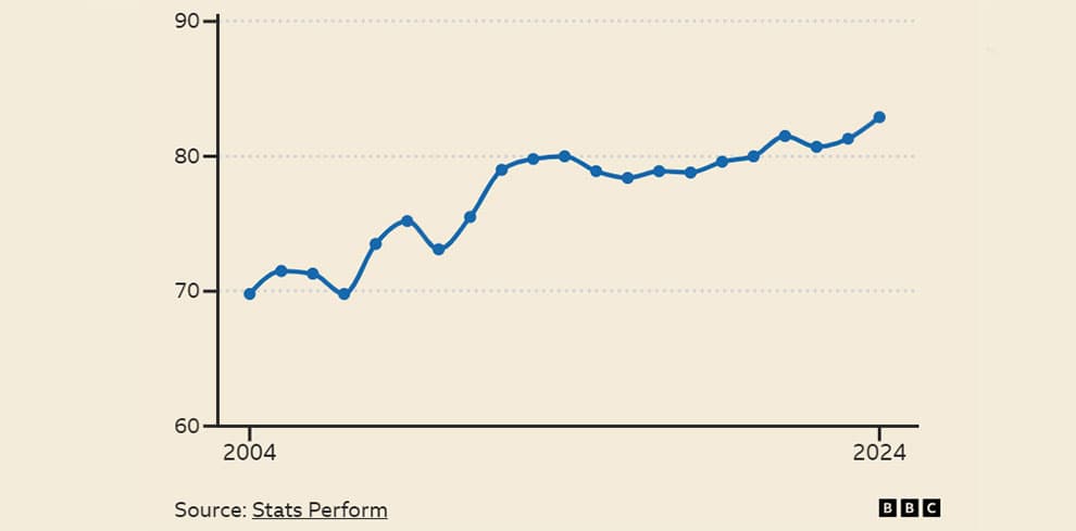 این روند، همانطور که در دادههای جمعآوری شده توسط Driblab نشان داده شده است، بسیار ثابت است.