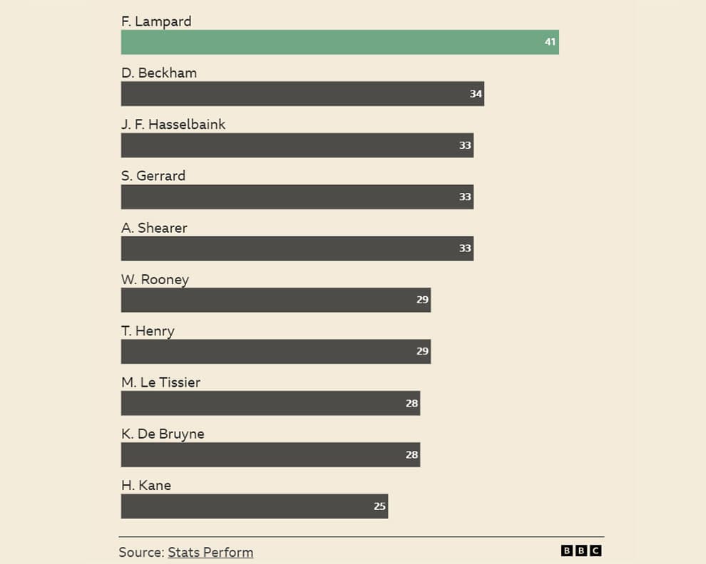 قهرمانان برتر گلهای لیگ برتر از خارج از محوطه جریمه، بزرگترین نامها و رقابتهای این دوره را نشان میدهد: فرانک لمپارد از چلسی، استیون جرارد از لیورپول، دیوید بکهام از منچستر یونایتد و تیری آنری از آرسنال.